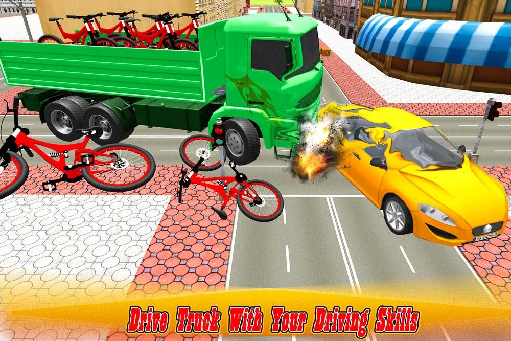 Do you like bike cargo games? Become the best transport driver of the town. So get ready to drive your offroad multi truck bicycle transport missions. Get on the bike, ride it on off road adventurous paths and reach your destination. Keep rocking as the bicycle extreme rider and bicycle transporter truck driver. Simulation and driving all here with BMX bicycle truck Transport. You have to show your perfect driving skills to manage the drive of heavy truck. So be ready this superb pack of transport truck bicycle game. Complete your loading and riding of bicycle mission then you need to accomplish the transport driving challenge. Deliver the BMX bicycle to the destination in shortest possible time. Make sure to drive the grand transporter truck machine with extreme care because any damage will be caused the level failed. So drive truck among the obstacles and curvy futuristic tracks.