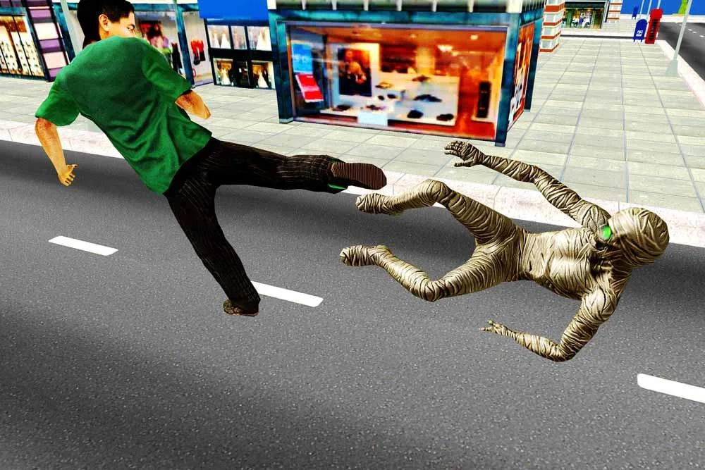 • Amazing story mode with fight action as flying mummy hero vs gangsters.