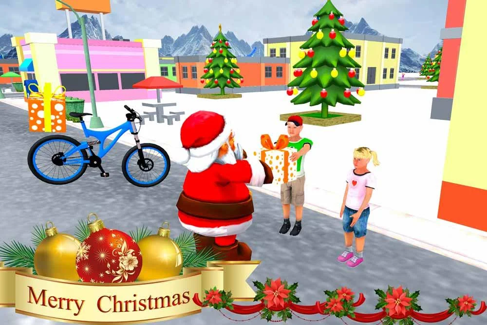 • Futuristic HD, 3D graphics in Santa Claus gift delivery games.