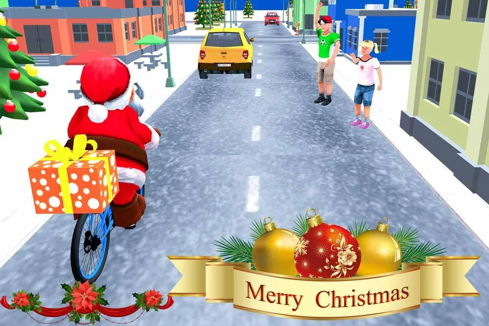 • Perfect virtual kids game of Christmas holidays as Santa Claus bicycle rider.